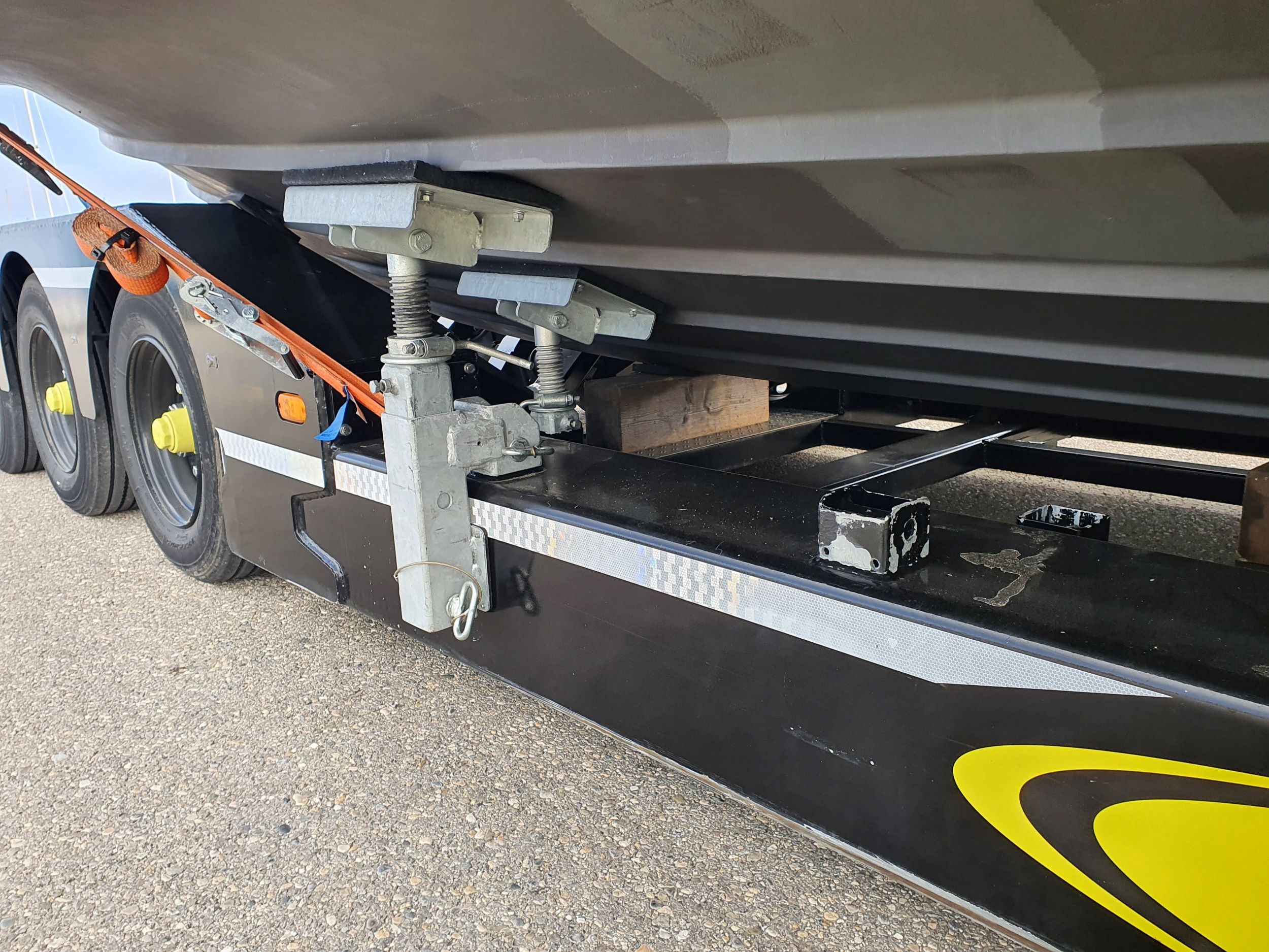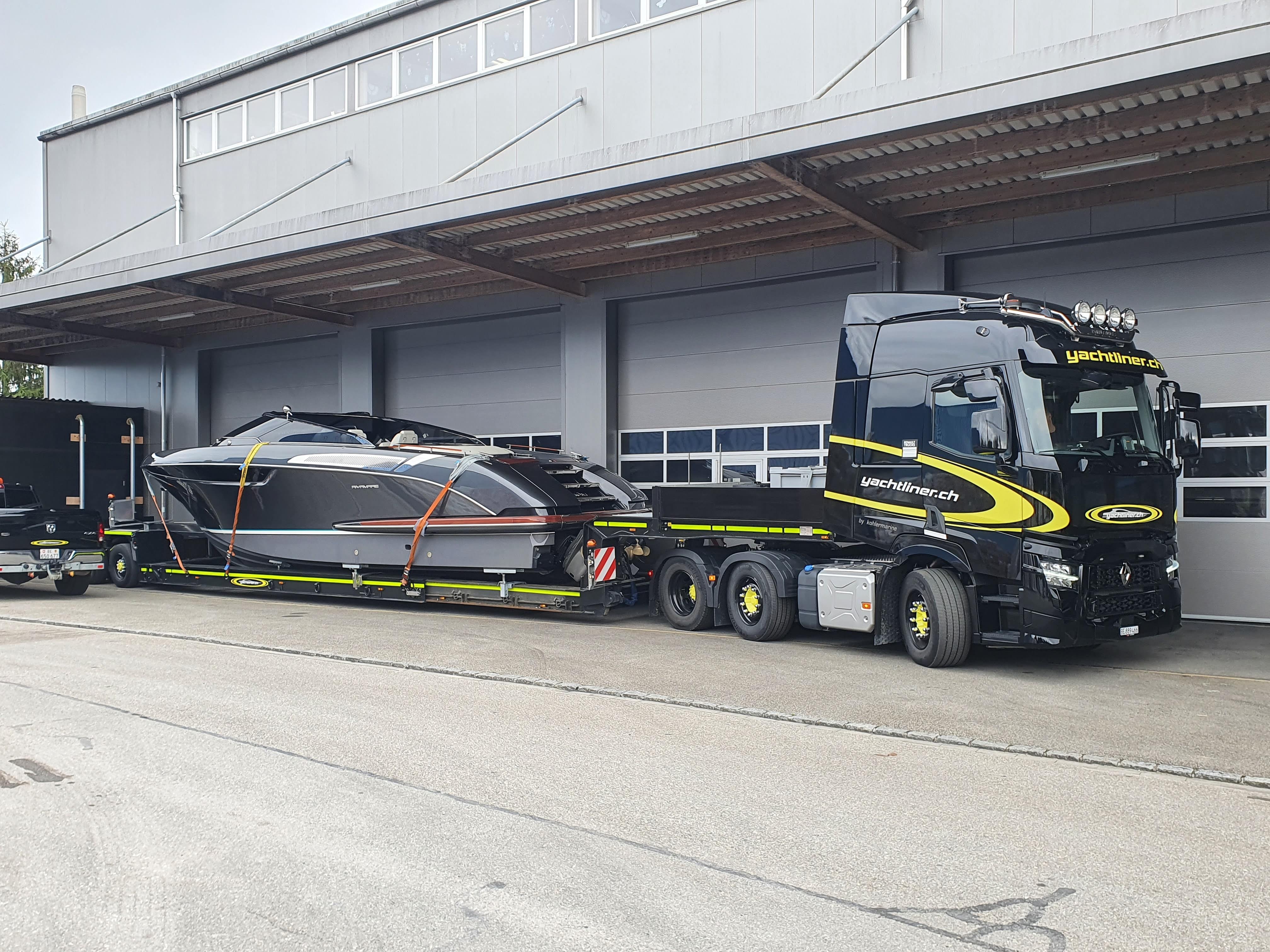 Der Auflieger lässt uns Motorboote von Grossen und Schweren Dimensionen mühelos transportieren.
